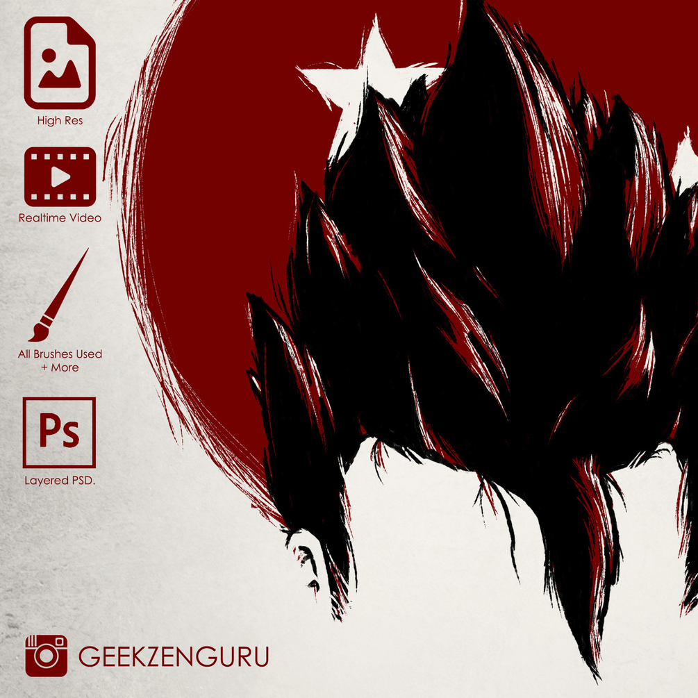 The Gohan Hair Illustration Package. Includes a High-res wallpaper with a variant as well as the layered psd file along with my brushes and the full video process.